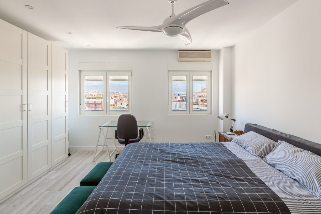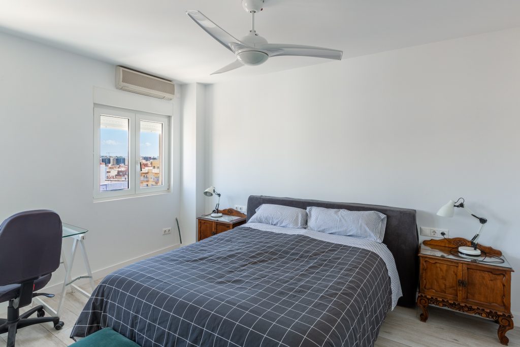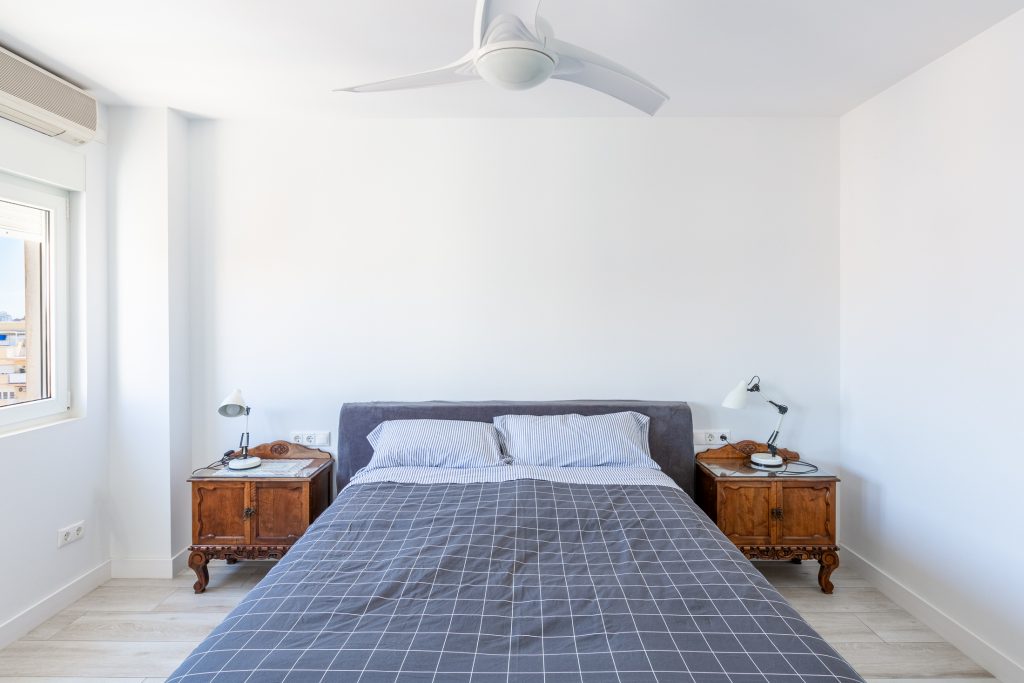 Piso equipado con todos los electrodomésticos: lavadora, secadora, horno, cocina de inducción, frigorífico, microondas, termo de agua caliente eléctrico, ventiladores de techo, varias tv, aire acondicionado en dormitorio principal y salón.