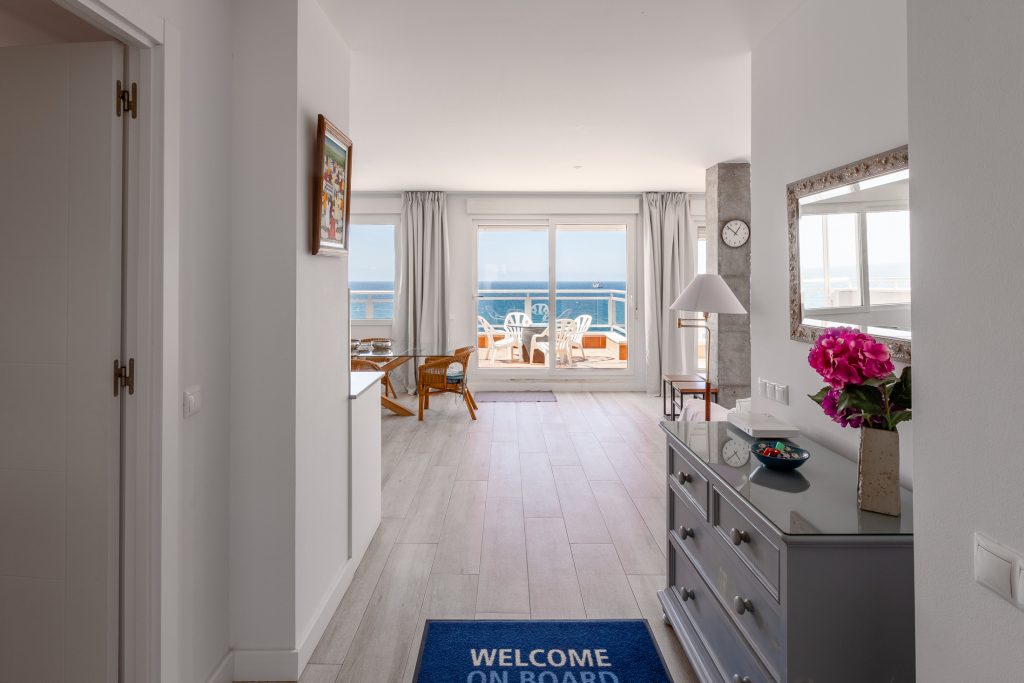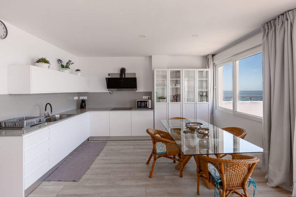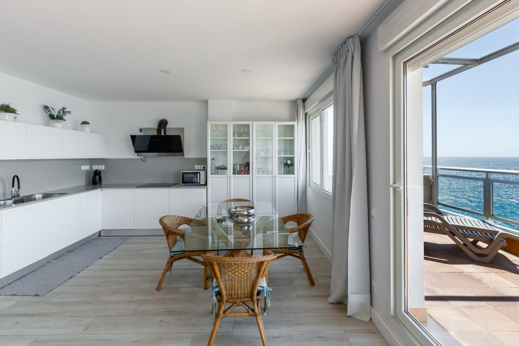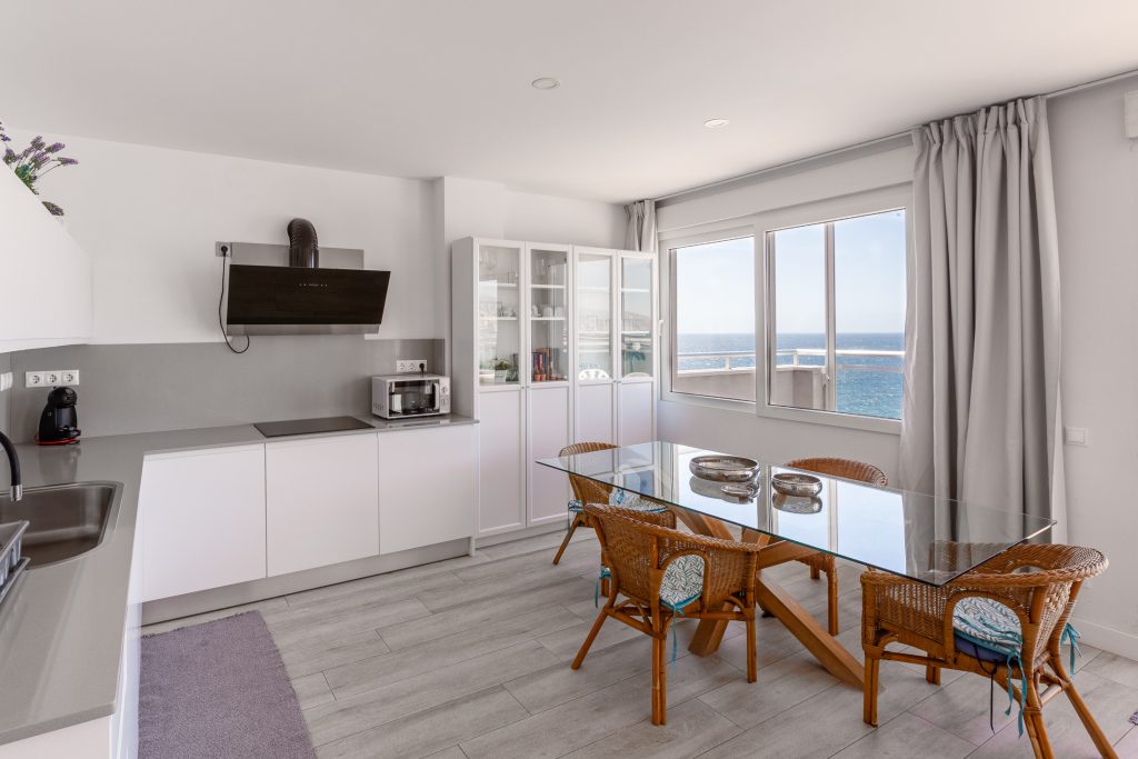 Cocina diáfana integrada en salón comedor. Fantástica terraza con vistas al mar. Cocina de inducción, agua caliente por termo eléctrico. Aire acondicionado frío-calor en salón y dormitorio principal. Terraza con tumbonas de playa y toldo .