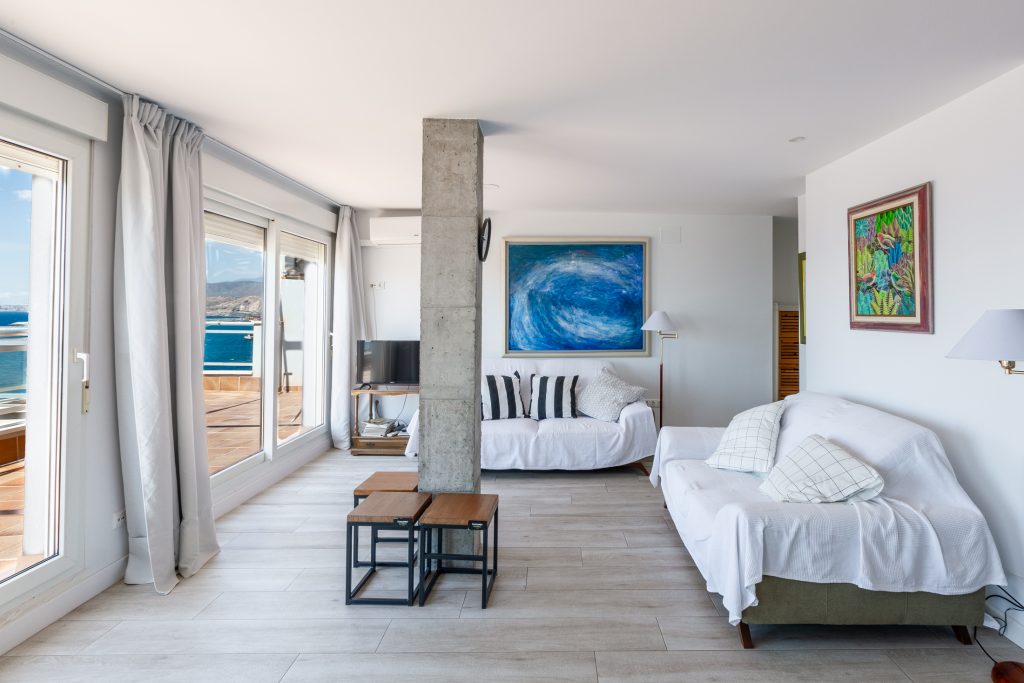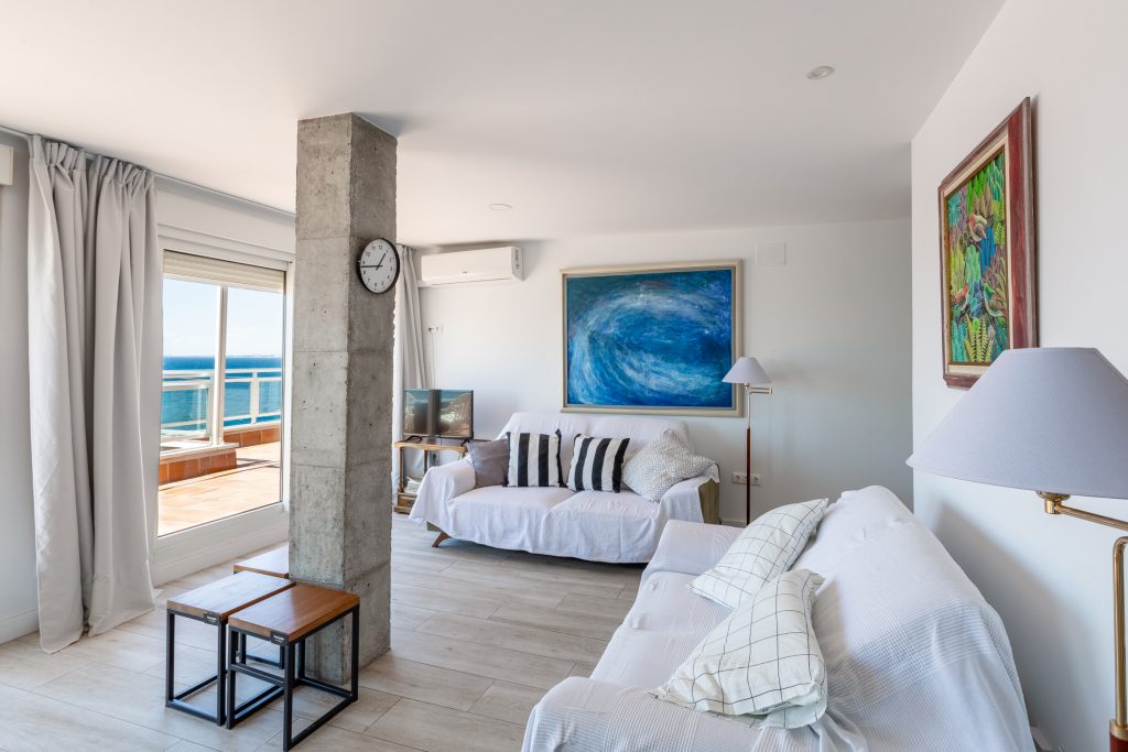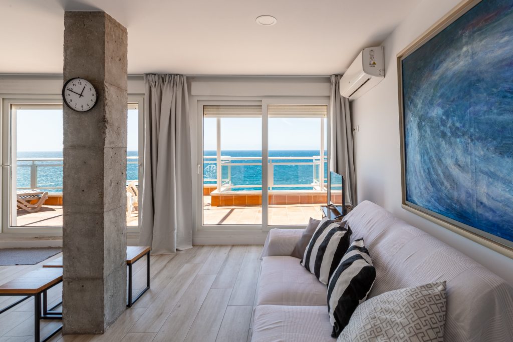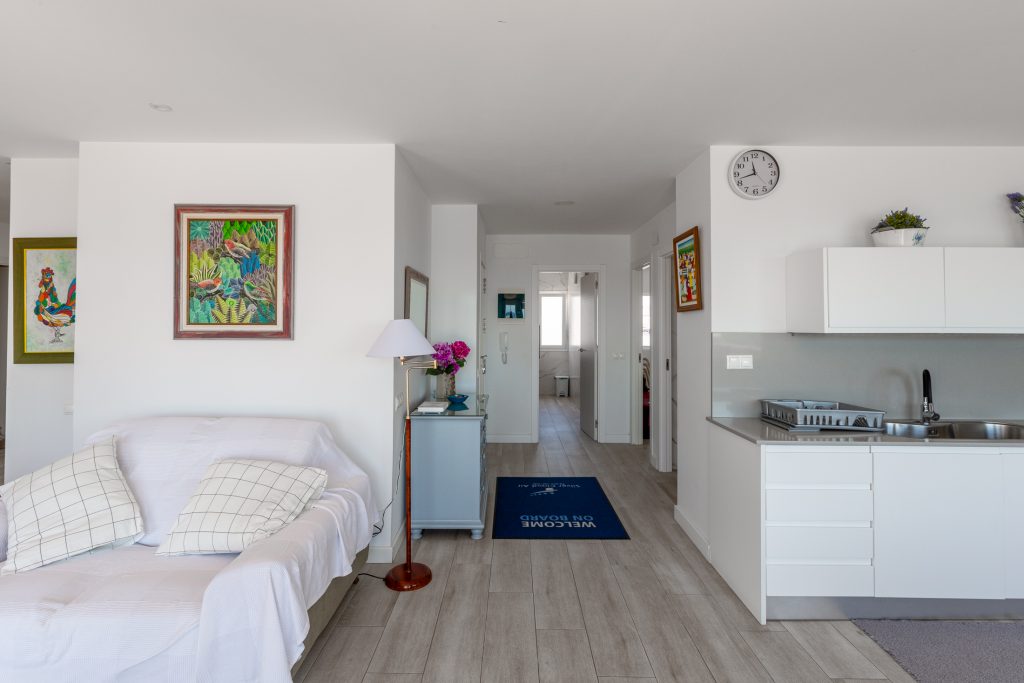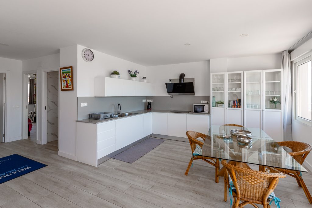 Cocina diáfana integrada en salón comedor. Fantástica terraza con vistas al mar. Cocina de inducción, agua caliente por termo eléctrico. Aire acondicionado frío-calor en salón y dormitorio principal. Terraza con tumbonas de playa y toldo .