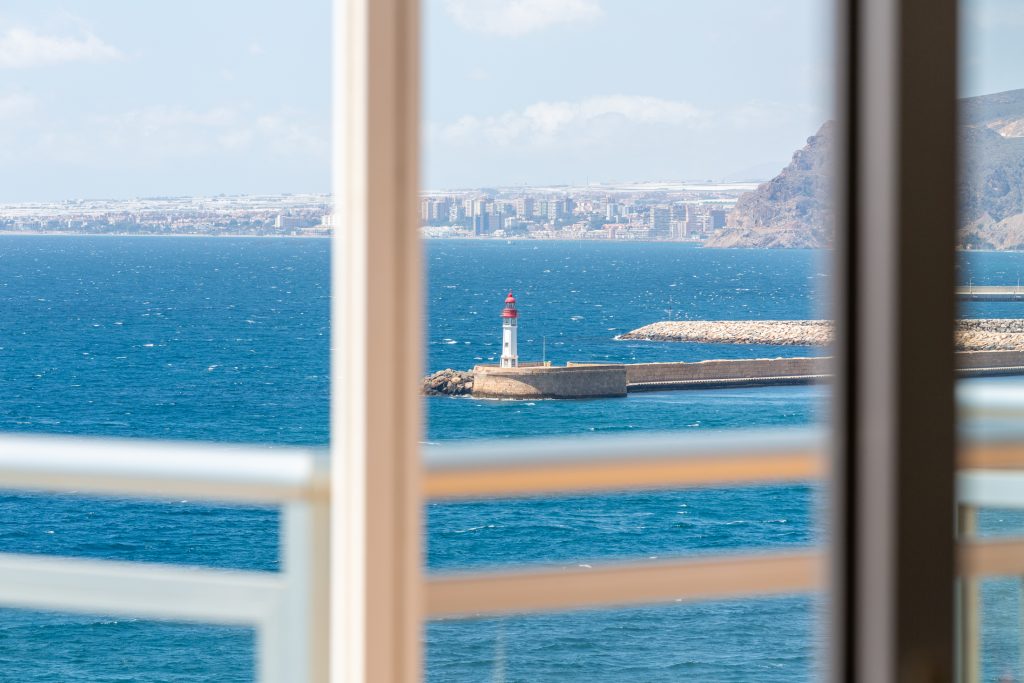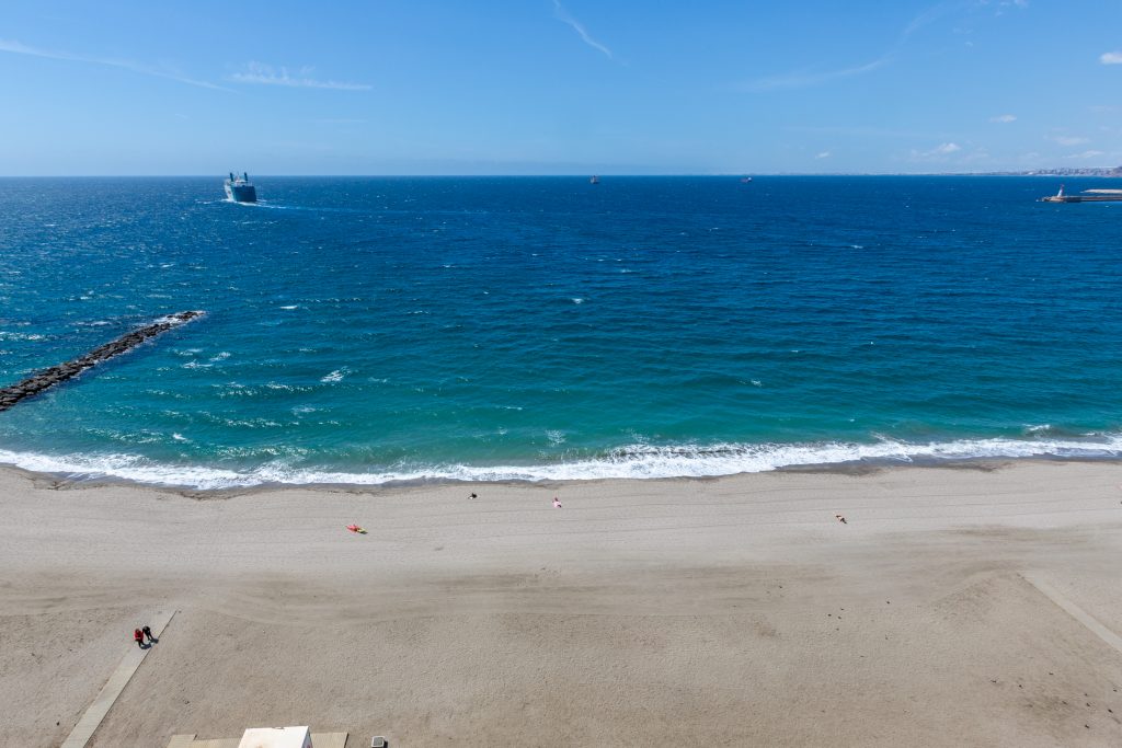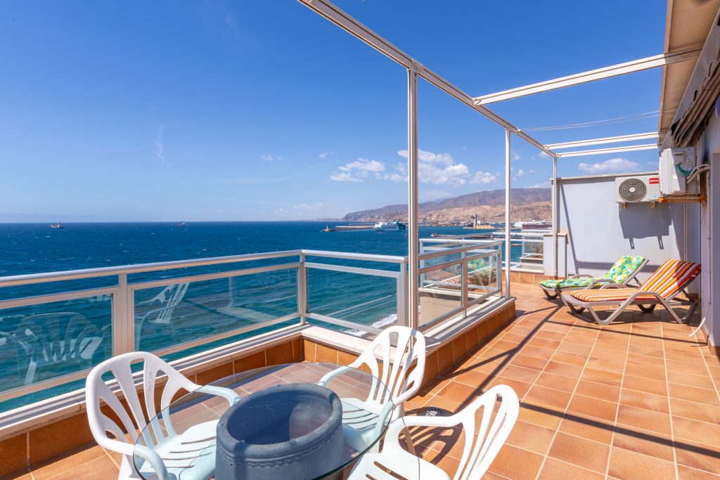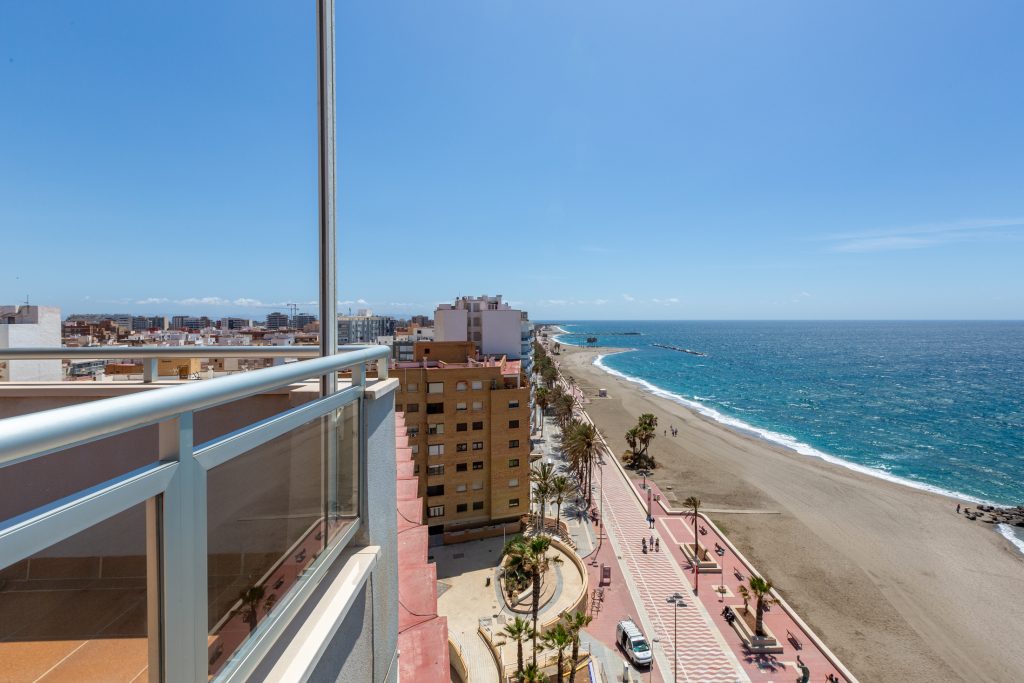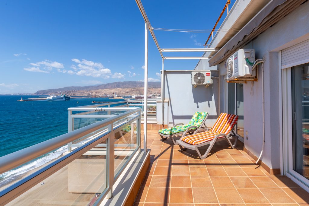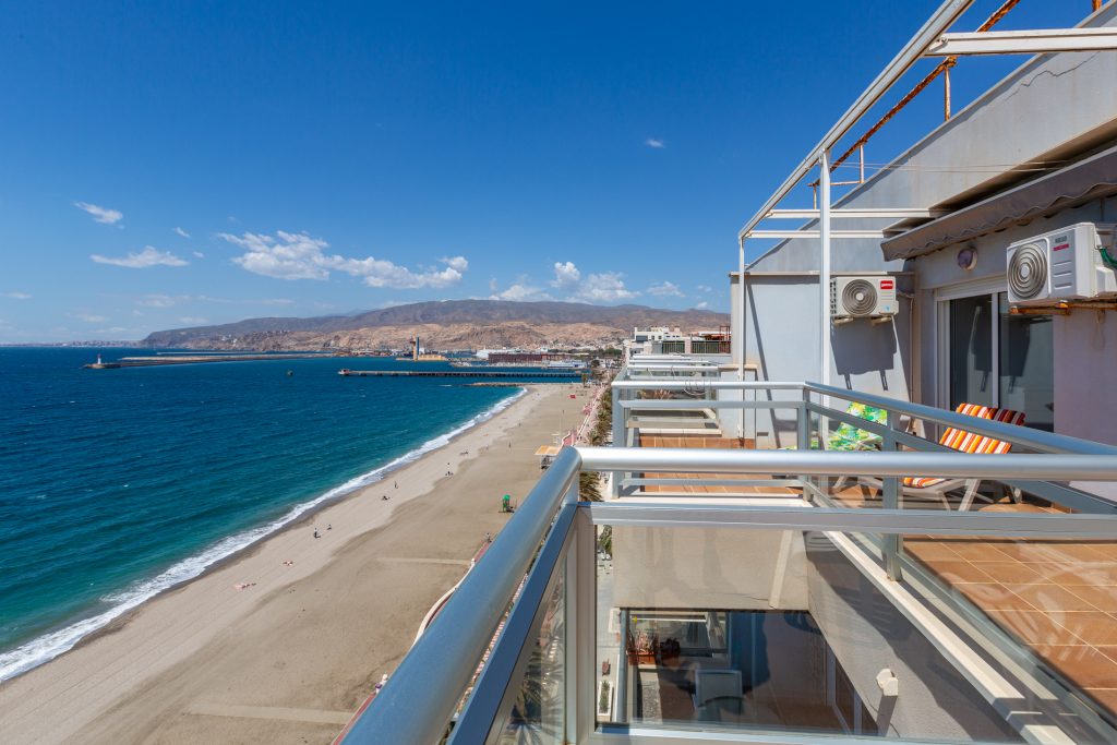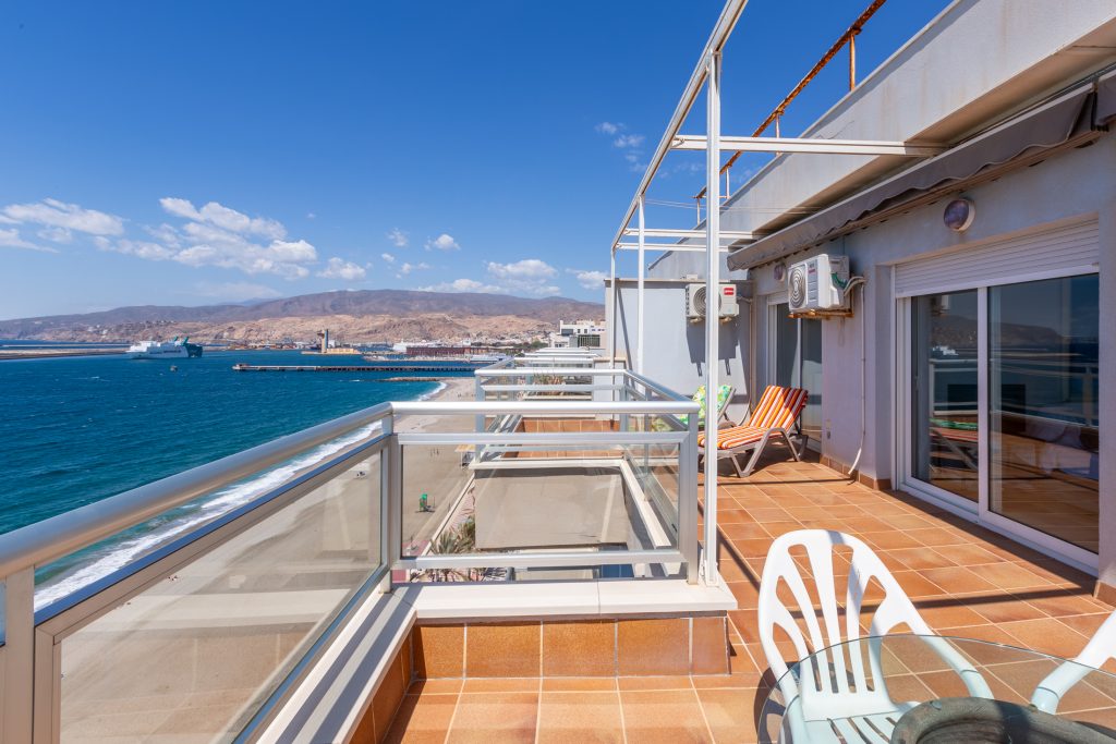 Se alquila maravilloso ÁTICO en primera línea de playa, en el paseo marítimo de Almería, barrio del Zapillo. Con plaza de garaje.
