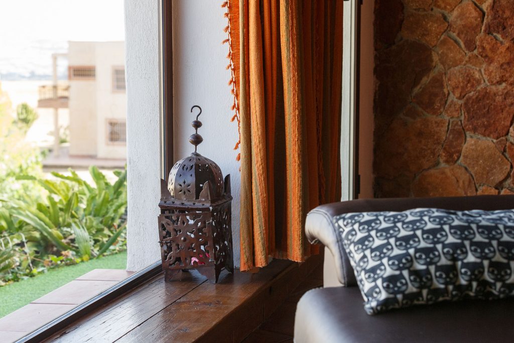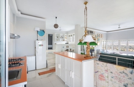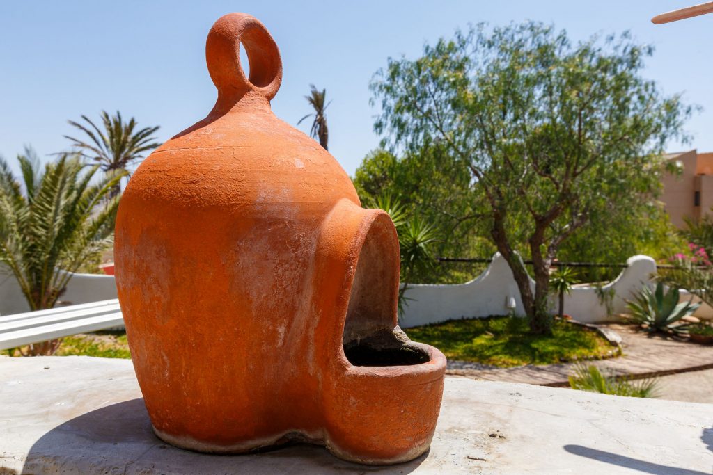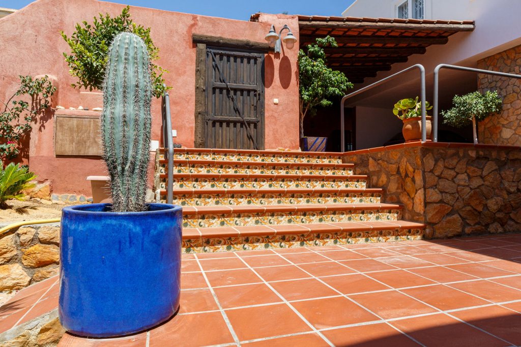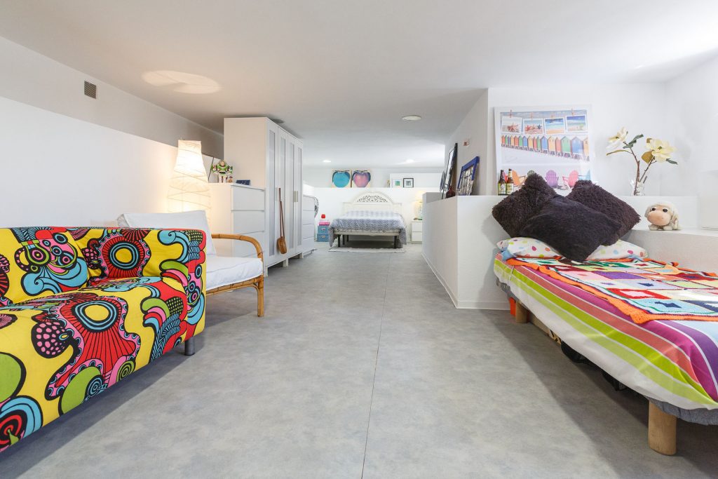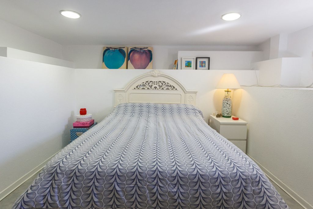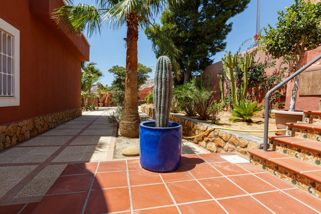 Compuesta por entrada-escaleras helicoidal de mármol, 2 dormitorios de matrimonio (con armarios empotrados), 1 baño completo, 1 amplio salón-comedor con cocina diáfana, y enorme terraza apergolada (162m2 sobre la cubierta de la casa matriz) con lavadero independiente. Orientación sur-oeste, con magníficas vistas al valle del Andarax y a la Bahía de Almería.