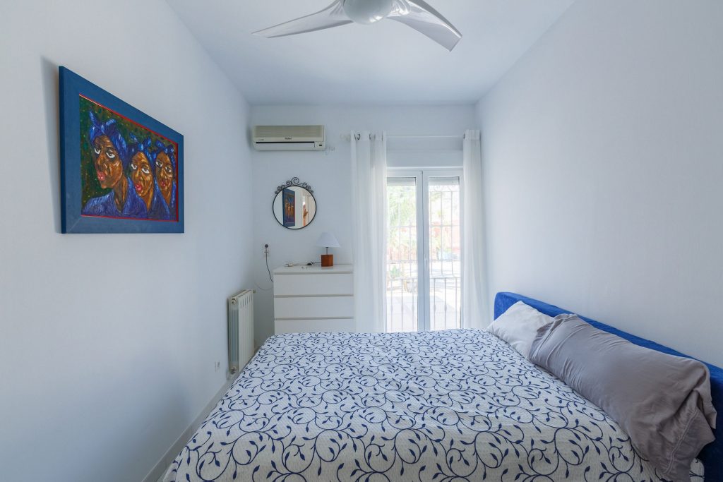 2 dormitorios de matrimonio, uno de ellos con cuarto de baño en suite (separado por un pequeño hall distribuidor). Ambos tienen equipo de aire acondicionado.